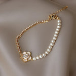Vintage Narukvica s Cvjetovima, Bisernim i Zlatnim Elementima