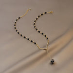 Wintage Ogrlica s Crnim Perlama i Privjeskom u Obliku Kapi